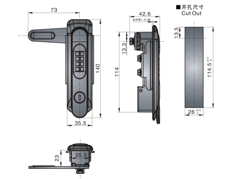 | 描述 | 制式是公制,表面处理是喷涂,镀铬,锁材质是锌合金,颜色是黑色,灰色,进入限制是钥匙锁定 |