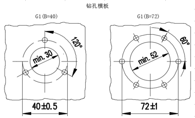 | G1(B=72)/G2:通过6颗M5X12带螺丝刀槽口的镀锌钢螺钉安装,螺钉包含在供货范围内。 | |||