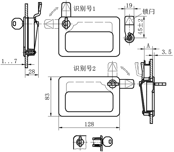 | 供货范围包括一件单独的闩锁以及两件配套钥匙,钥匙可在锁芯起始位置拔出。 | |||