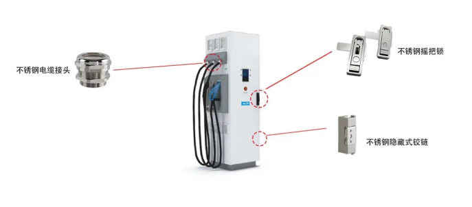 义文深耕新能源领域,提供高标准、高品质的工业五金零部件产品,为电动汽车充电桩相关企业带来可靠的零部件产品解决方案。义文不锈钢产品可满足制造企业对于充电桩密封性、安全性、便捷性等方面的需求,同时产品在室内外均可使用,性能稳定。