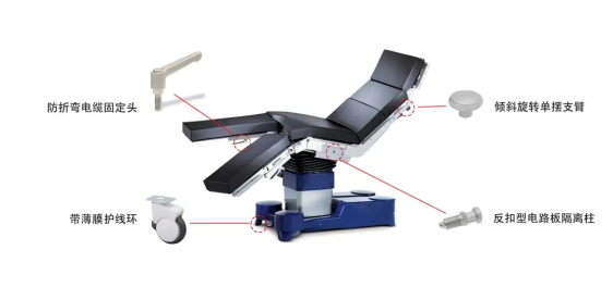 手术床的设计要求考虑到手术过程中的各种情况,如便于医生操作、保证患者安全和舒适等。义文机械零部件产品设计符合人体工学,使用简易,方便调节,应用在手术床上,为医生和患者带来更舒适更便捷的使用体验。