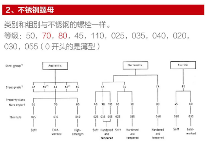 常见的不锈钢紧固件的组别和等级(等级和碳钢的等级完全不一样),请看下方详解。