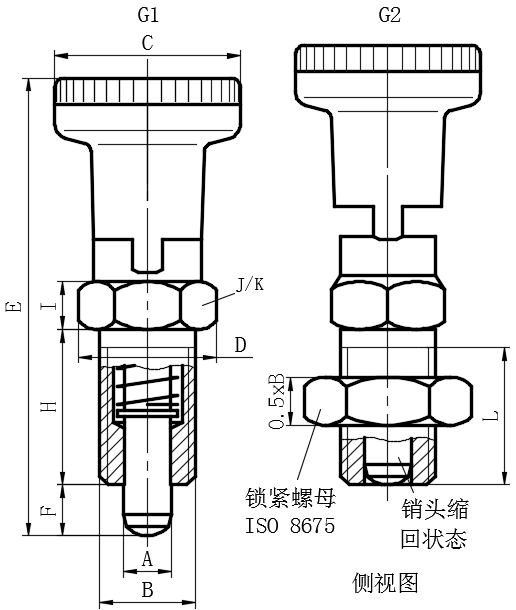 适用于要求进行定位操作的地方,且适用于需要将销头锁定在缩回位置的场合。槽口会将销头固定在此位置。