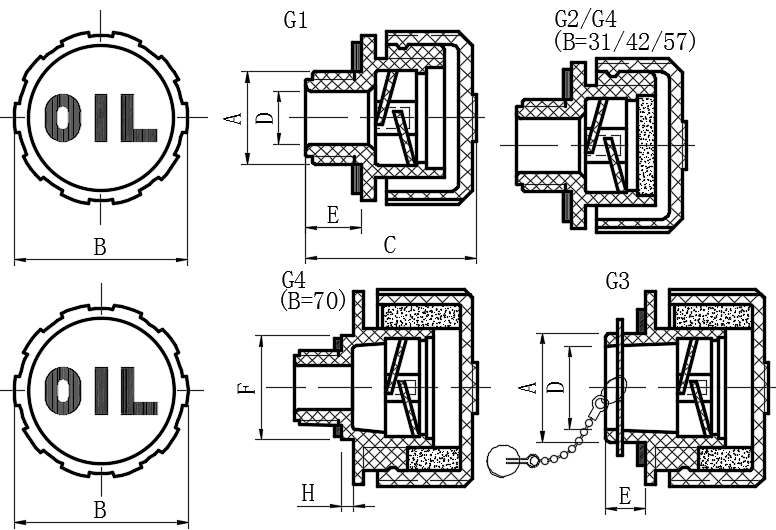 盖帽:RAL 2004橙色,半亚光饰面,带“OIL(油)”标记。