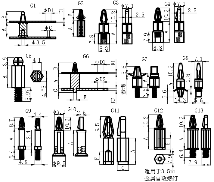 G3/G4/G7/G12/G13:上板孔径D1±0.08;