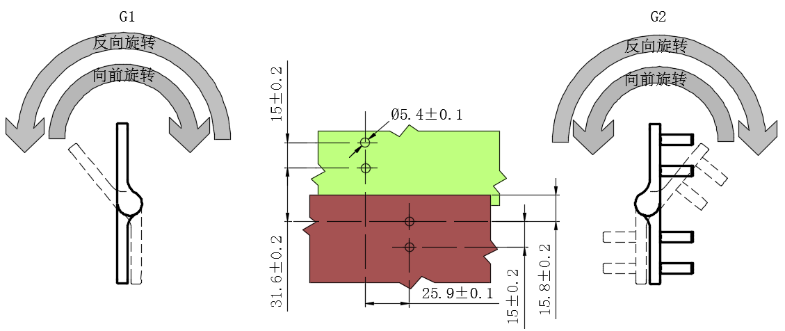 为确保正常运行,组件必须至少包含(1个)G1型和(1个)G2型铰链